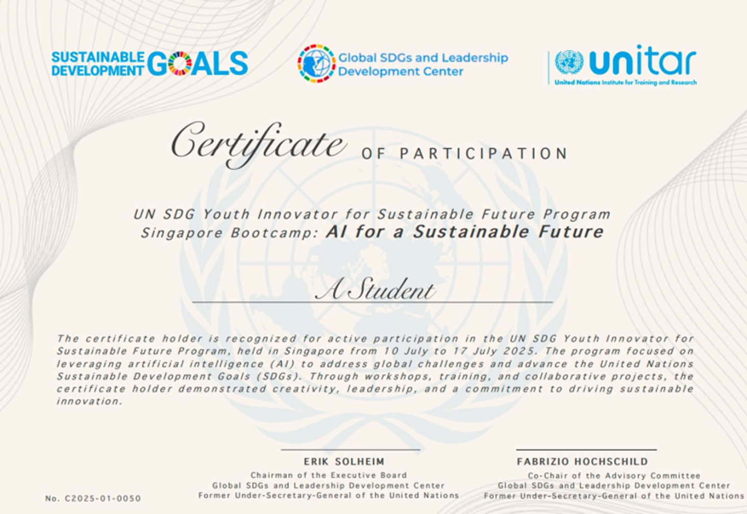 ◆联合国项目(香港站)初创大使实训证明:表现突出的学员将获颁香港中外交流中心认证的“校园大使”荣誉称号及推荐信;