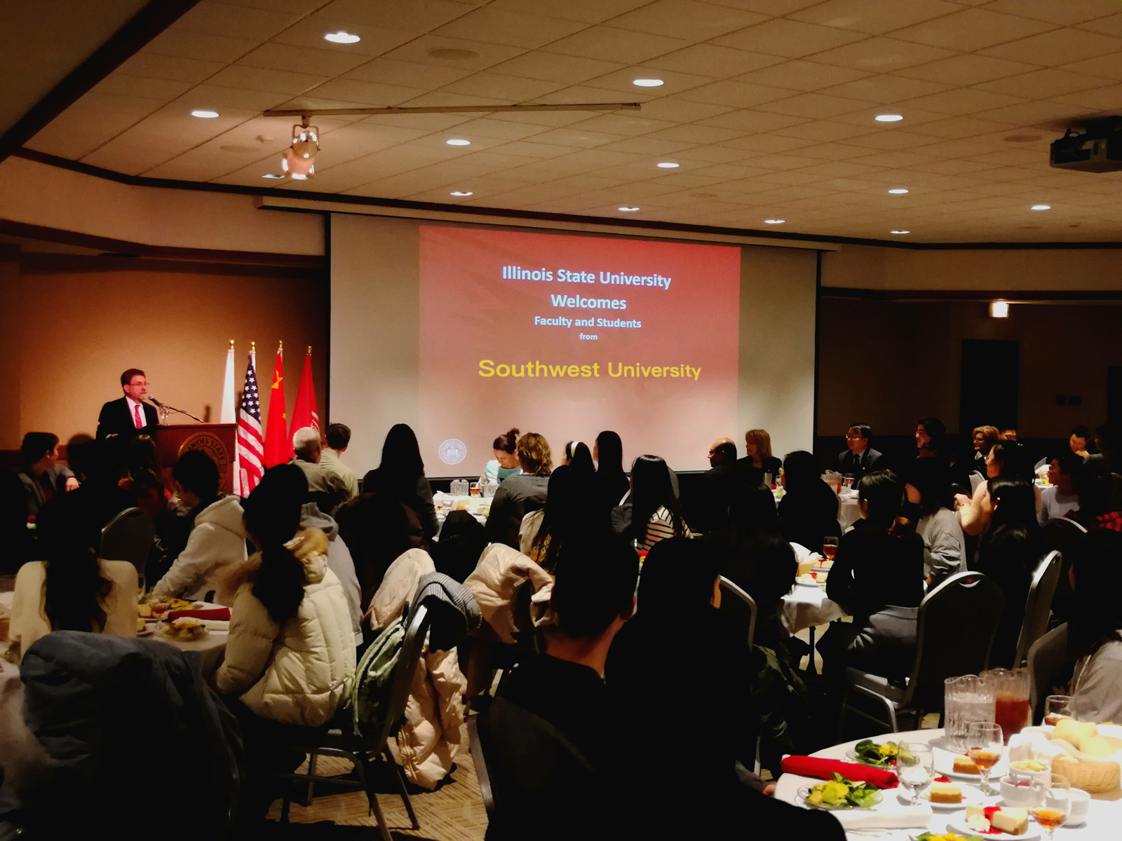 让人欣喜与荣幸的是,本周四ISU举行欢迎午宴,宴请我校全体师生。宴会上,ISU学术副校长兼教务长墨菲教授和分管本科教育副校长乔纳森 罗森索尔博士分别致辞欢迎我校90余名师生,祝愿我校师生在ISU期间学习顺利、生活愉快,希望两校不断增强包括师生交流学习在内的各种合作与交流活动,共同促进两校国际化发展进程。我校国际处张家政副处长致辞感谢ISU的热情接待和周到安排,表示正是ISU的热情接待和周到安排,使我校全体师生倍感宾至如归,相信在两校领导的关怀下,通过双方共同努力,两校合作必将不断结出丰硕的果实。午宴期间,大家在美食中交流甚欢,欢声笑语充满整个大厅。
