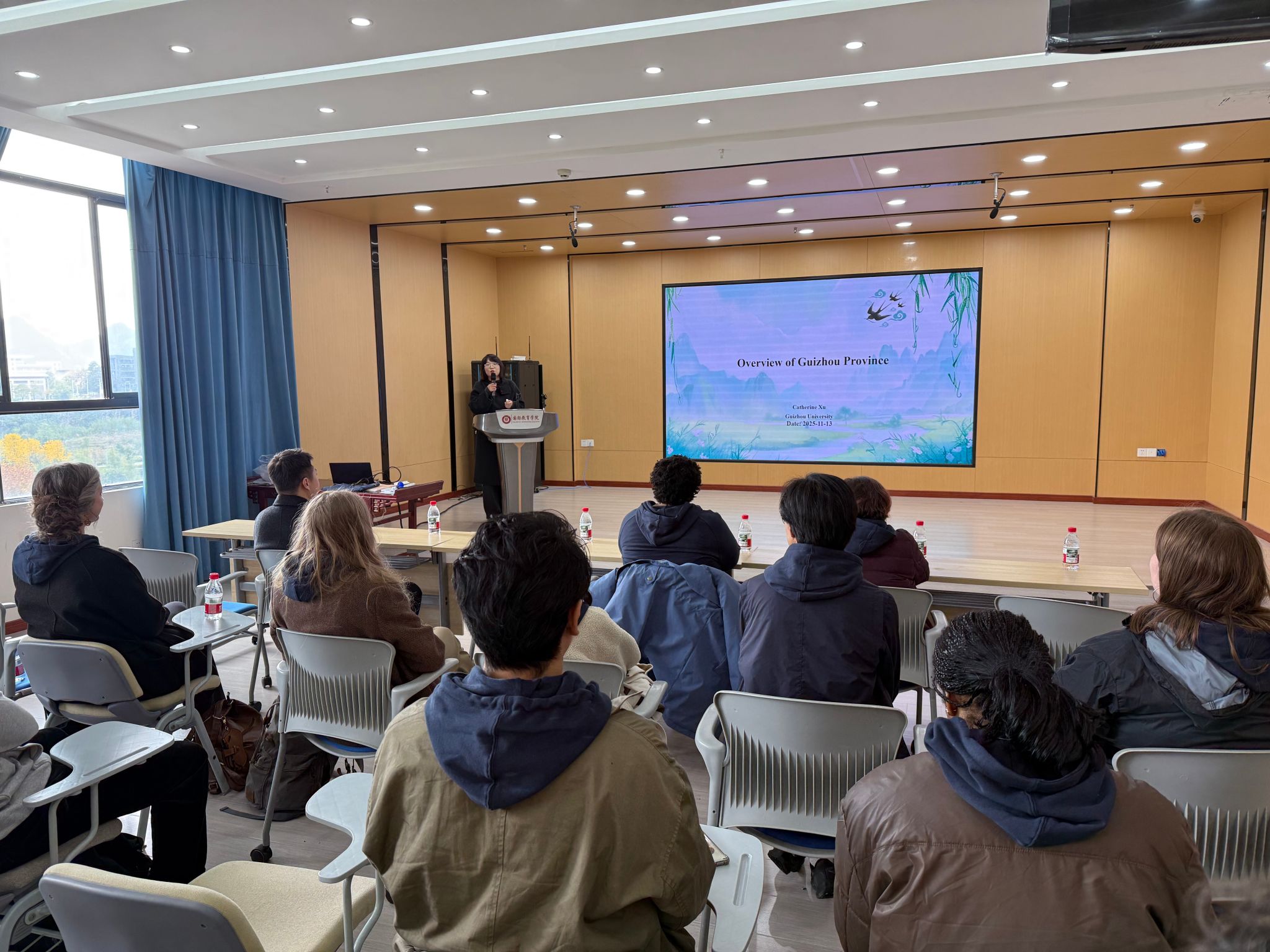 本次活动中,代表团访问了贵州大学,参观校史馆并听取了贵大自1902年创建以来的辉煌发展史。贵大国际教育学院徐凯琳老师做了题为“贵州省情介绍”的讲座,从贵州的历史、地理、人文、民族风情、经济等方面做了详实的介绍。大家对贵州省未来发展致以殷切祝愿,贵大美丽的校园也让老师们流连忘返。