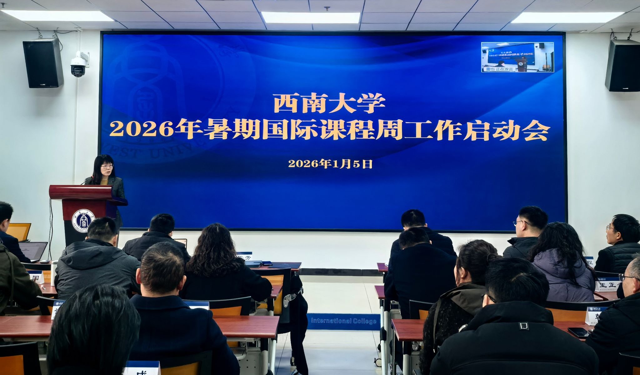 1月5日上午,学校召开2026年暑期国际课程周工作启动会。副校长赵玉芳出席会议并讲话,会议由国际合作与交流处处长陈炳君主持。本科生院、研究生院相关负责人,及各二级教学科研单位分管教学工作副院长参加会议。