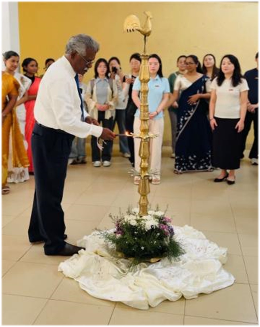 1月14日,凯拉尼亚大学理学院,开营仪式现场中外师生共同参与点灯仪式