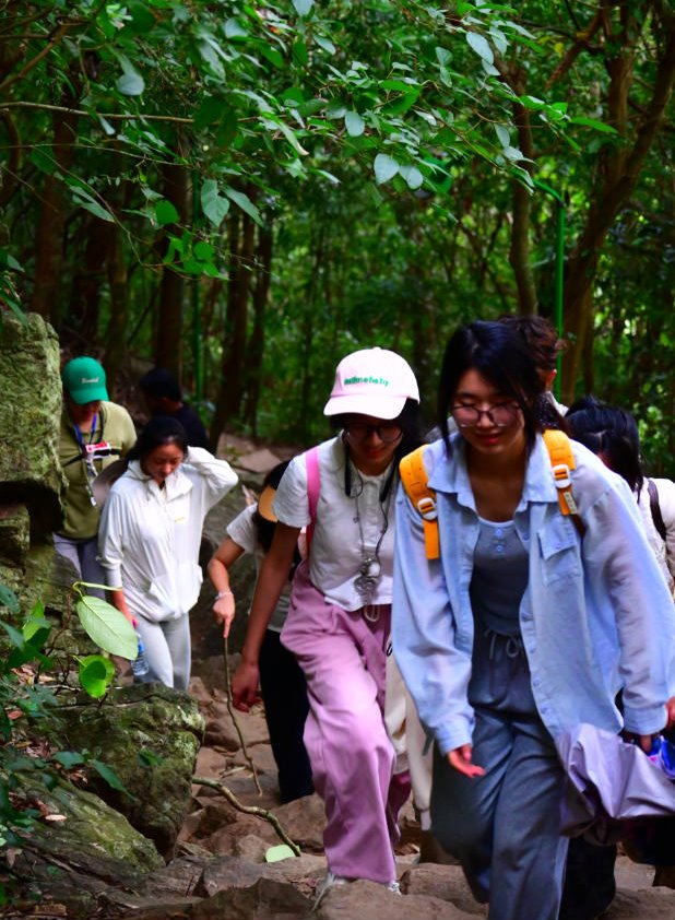 研学期间,师生在大象孤儿院内参观大象粪便再利用造纸术、Pidurangala岩徒步、参观当地自然博物馆、马杜河游船