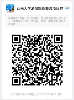 3.扫描下方二维码加入西南大学港澳短期交流项目钉钉群。