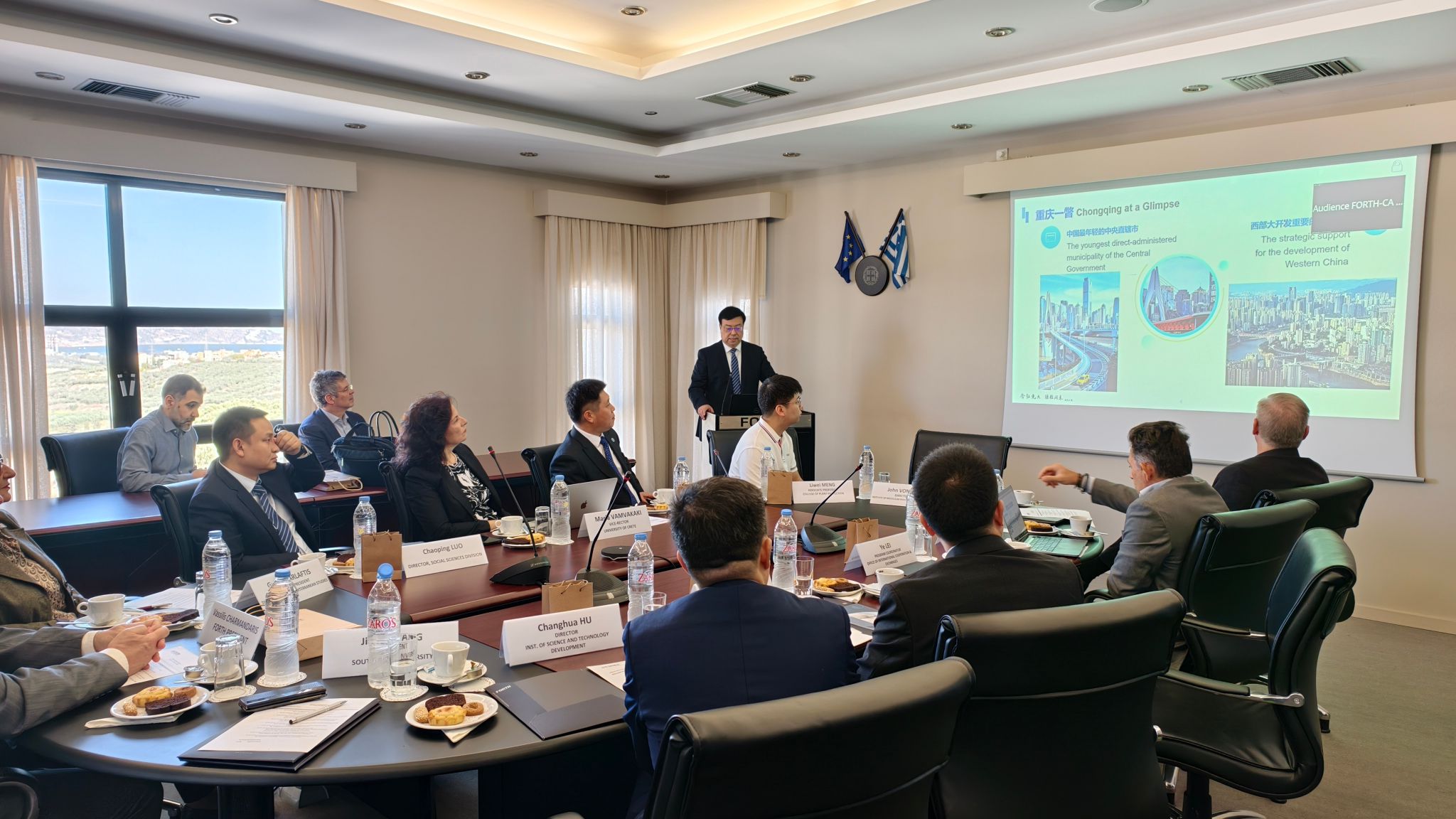 在希腊研究与技术基金会,王进军与基金会主席瓦西利斯·查曼达里斯(Vassilis Charmandaris)及其下属分子生物学与生物技术研究所、电子结构与激光研究所、计算机科学研究所、地中海学研究所、化学工程科学研究所等相关负责人座谈交流。