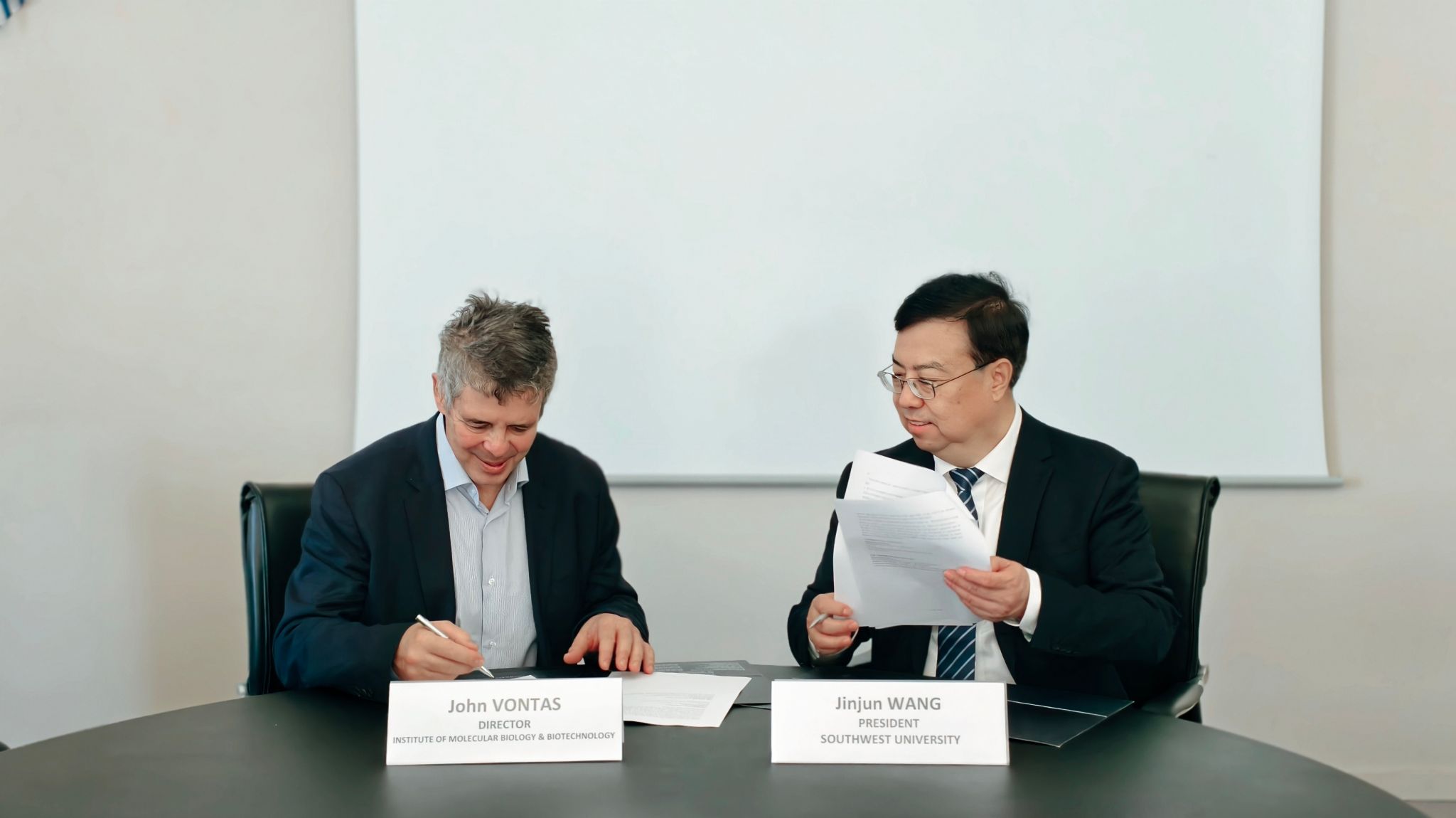 会后,学校与分子生物学与生物技术研究所举行联合实验室签约仪式,王进军与研究所所长约翰·冯塔斯(John Vontas)作为代表签署协议。其间,克里特大学副校长玛利亚·瓦姆瓦卡基(Maria Vamvakaki)受邀参加座谈。