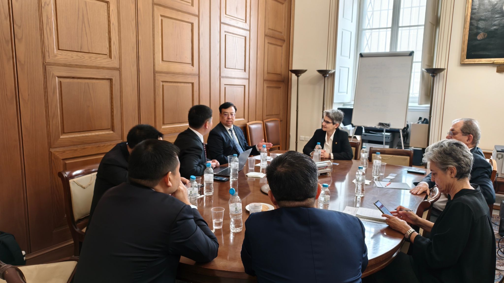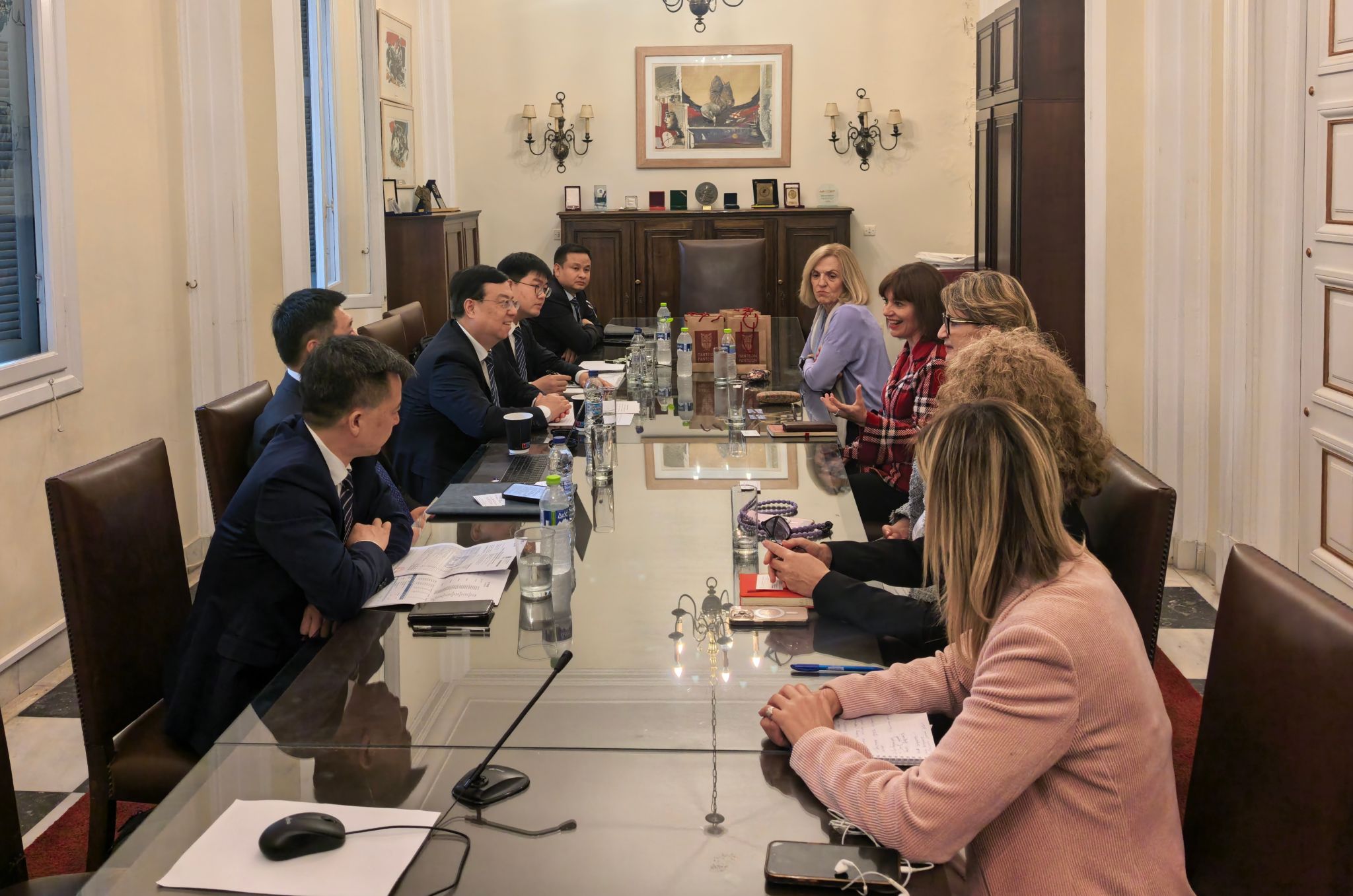 在派迪昂政治经济大学,王进军与该校校长克里斯蒂娜·库卢里(Christina Koulouri)会谈,双方围绕学生交流项目、中希文明互鉴与研究智库合作、校际高层互访等三方面进行深入交流并达成共识。