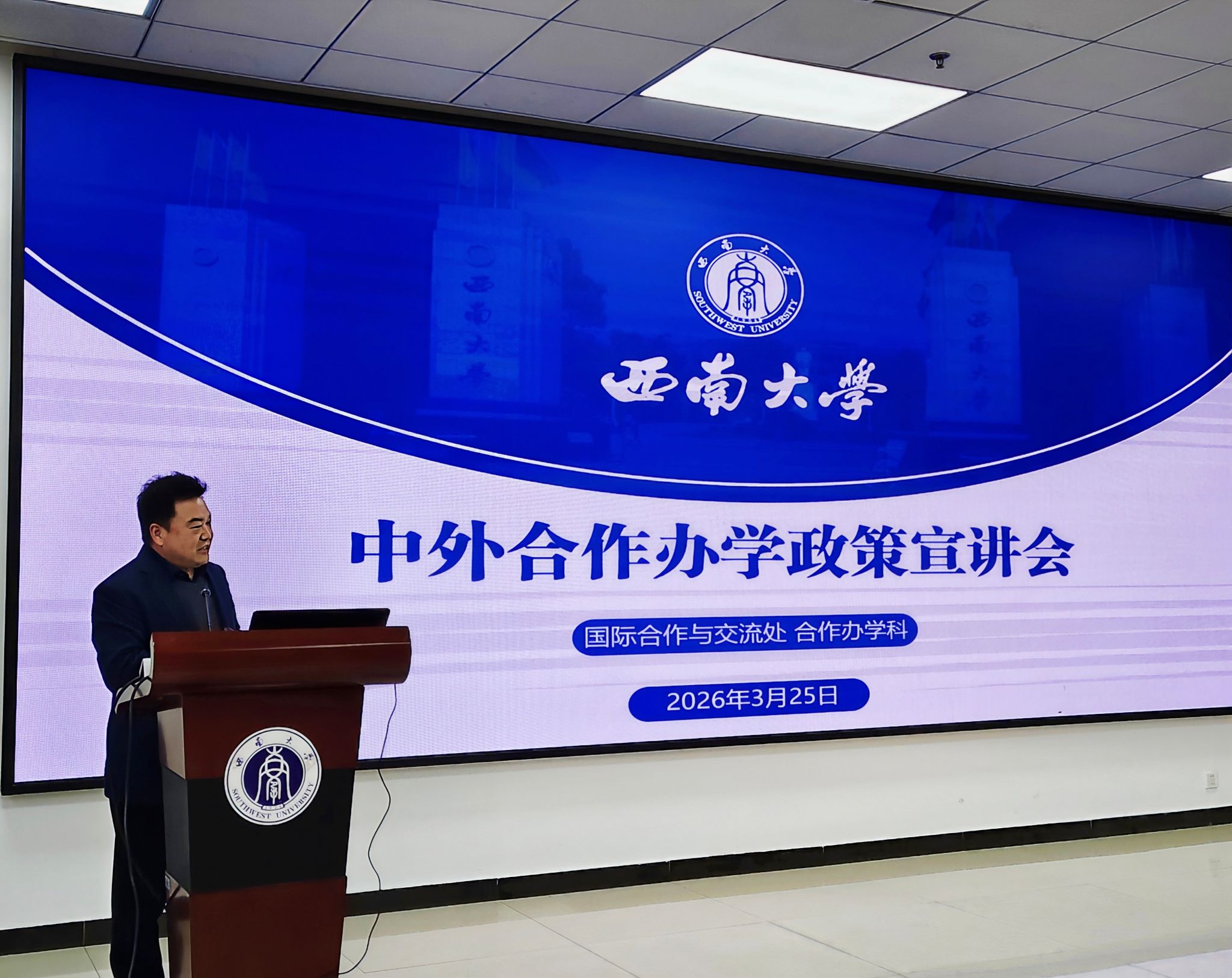 为深入贯彻国家教育对外开放战略,落实学校“十五五”规划,推进学校中外合作办学申报与建设工作,3月25日学校在国际学院召开中外合作办学政策宣讲与交流会。国际合作与交流处和各二级教学科研单位负责人、外事秘书及相关工作人员30余人参加会议。